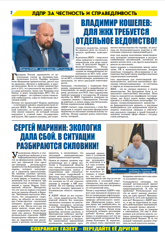 Читайте свежий выпуск газеты "ЛДПР в Ульяновске"