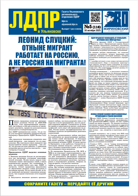 Уважаемые жители Ульяновска! Вышел очередной номер региональной газеты "ЛДПР в Ульяновске"